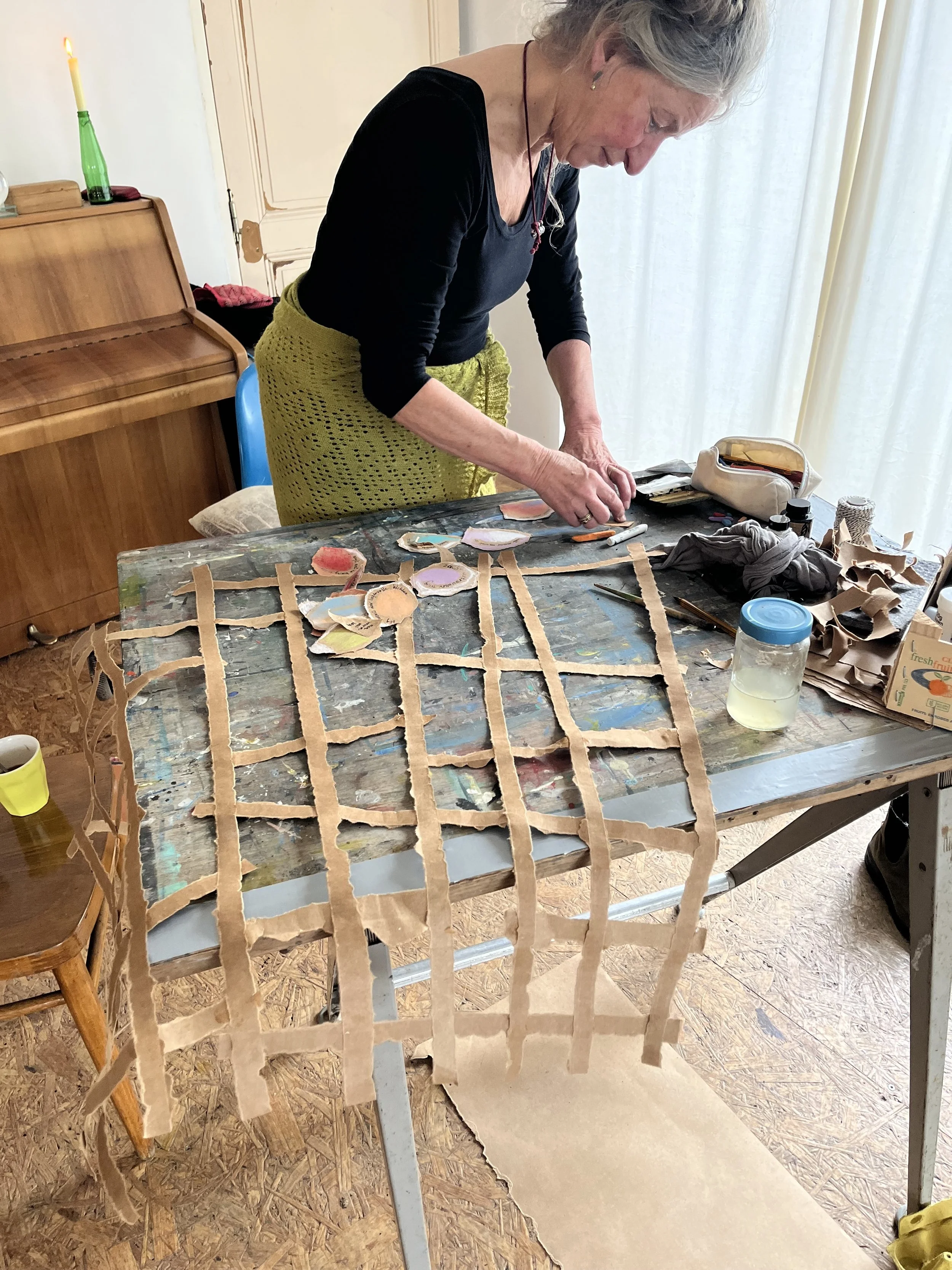 De artistieke uitingsvormen zijn daardoor heel autonoom en voor iedereen verschillend. De een werkt piepklein en gedetailleerd en de ander heeft een grote muur nodig en een bezem kwast. Ik begeleid iedereen individueel zodat je precies krijgt wat je nodig hebt. De materialen waarmee gewerkt wordt lopen dus ook uiteen. Van speksteen tot borduren of objecten in de tuin maken. Er zijn veel materialen aanwezig. Wil je iets specifieks check dan of ik het heb of neem het mee.